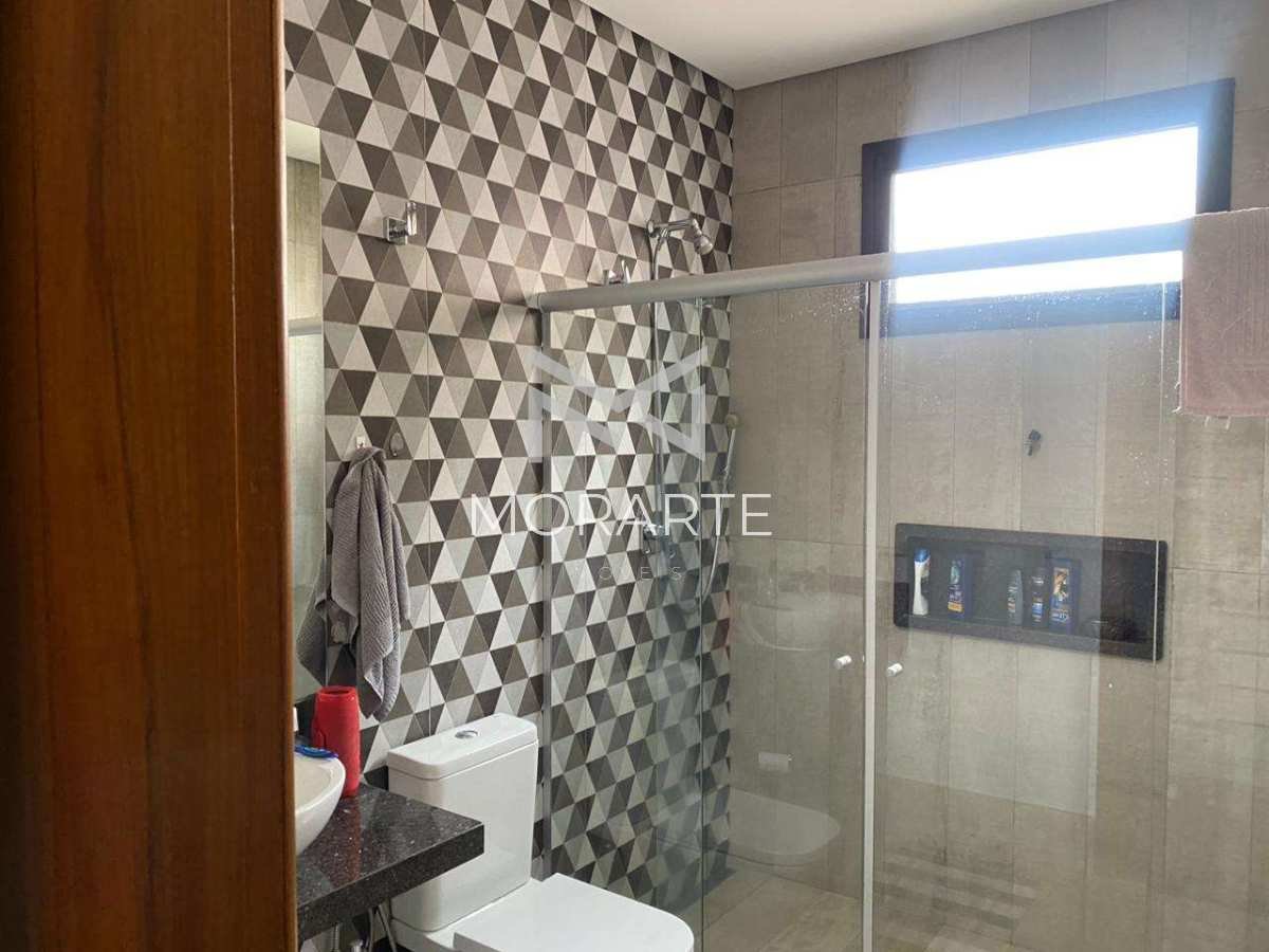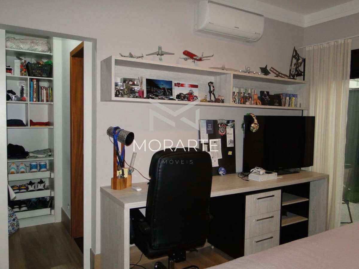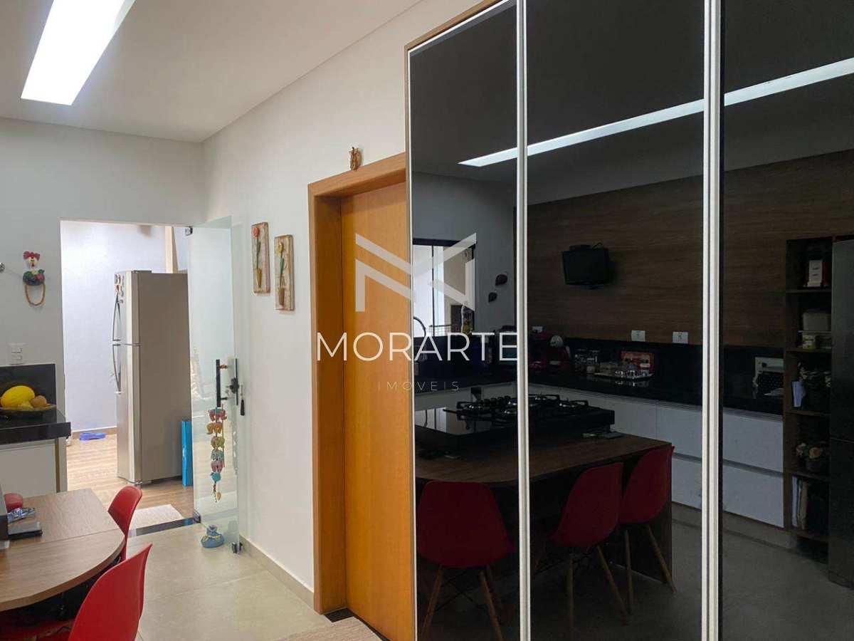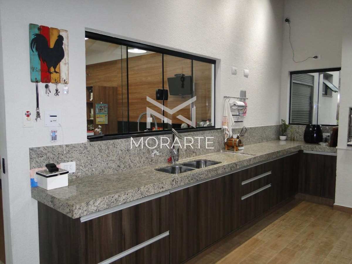 O imóvel possui 451 m² de terreno e 215 m² de área construída, oferecendo ambientes amplos e bem planejados. São 3 suítes, sendo 2 com closet e a suíte master equipada com banheira de hidromassagem. A sala possui pé-direito duplo, proporcionando amplitude e iluminação natural. O imóvel conta ainda com lavabo, cozinha moderna com ilha integrada à área gourmet com churrasqueira, além de quintal gramado.